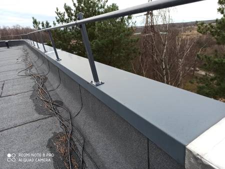 Apsauginė stogo tvorelė gaminama iš juostos 3×40 arba 1,5×40 (cinkuota), kuriuos vamzdžiai D18-25. Dažoma milteliniu būdu. Vamzdžiai sujungiami specialiomis jungtimis. Naudojami plokštiems ir šlaitiniams stogams.