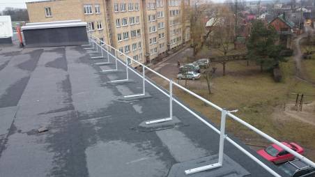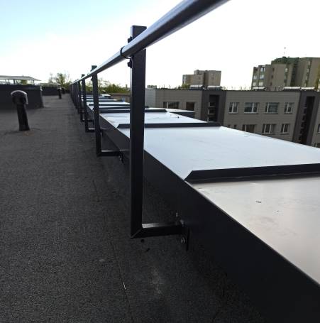 Taip pat gaminama iš kvadratinio vamzdžio su apkabomis, vamzdžiai D18-22. Dažoma milteliniu būdu. Vamzdžiai sujungiami specialiomis jungtimis. Naudojami plokštiems stogams ant parapeto.